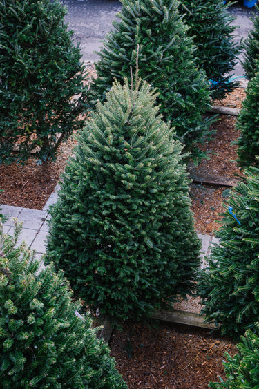 The Fraser Fir is beloved for its deep blue-green color and for it slightly more upright branching. Its branches are soft yet strong and hold up well to decorative ornaments. Of all the Christmas trees, the Fraser Fir has the best needle retention and will last throughout the season with proper care.