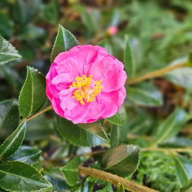 Camellia 'Winter's Joy' is a lovely evergreen shrub that brings color to the winter garden. Produces beautiful, fragrant, pink flowers with a soft, delicate appearance. Blooming typically occurs from late winter to early spring, adding brightness when many other plants are still dormant. Generally grows to about 4-6 feet tall and wide, making it versatile for various garden settings. Prefers partial shade to filtered sunlight.