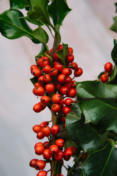 Add a touch of classic holiday magic with our Oregon Green Holly Stems. Featuring glossy leaves and bright red berries, these stems bring festive color and natural charm to any arrangement, wreath, or centerpiece, perfect for a bold, woodland-inspired holiday look.