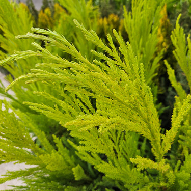 Naturally pyramidal evergreen with soft, feathery chartreuse-green foliage that may bronze in winter and rich, peeling reddish-brown bark. Tiny, unique spherical cones add subtle seasonal interest, while its vertical form adds height to containers and seasonal window boxes.