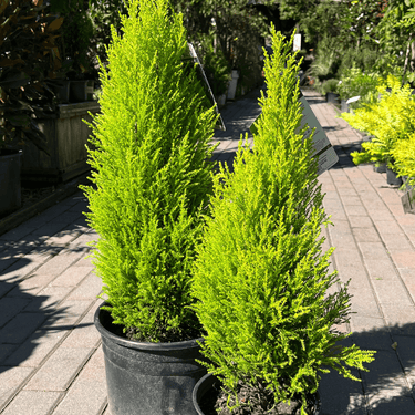 The bright golden-yellow foliage has a remarkable lemon scent. Conical habit, perfect as an evergreen addition for seasonal floral containers. Mature plants make great hedging/ screening.