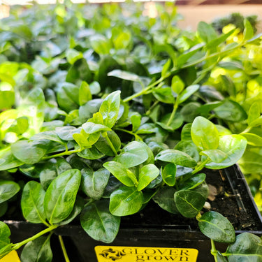 Large, deep blue flowers in April – May. Large, glossy evergreen leaves. 4 – 6″ tall. Light to full shade. Drought tolerant. Competes well with tree roots. Deer resistant. Small to large-scale groundcover. Excellent choice for creating islands around trees & shrubs, bank plantings, shrub borders. Zone 4.