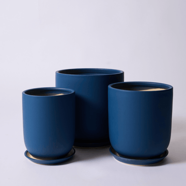 Medium Matte Blue Cylinder With Saucer