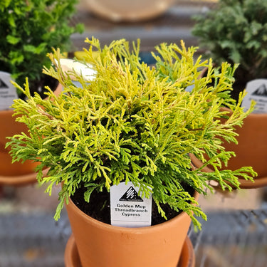 A cheerful, mounding evergreen with fine, thread-like golden foliage that brightens any space. Fresh spring growth emerges in vivid gold and keeps its warm tones through all four seasons.