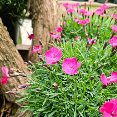 Bright pink blooms add nonstop color from spring through fall. A compact, reblooming variety perfect for borders, containers, or mass plantings.