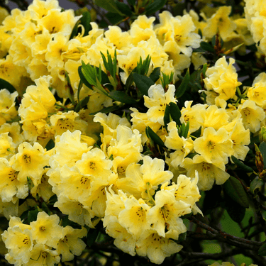 One of the best yellow rhododendrons, this variety has dense, lustrous dark green foliage and big clusters of sunny yellow flowers. It grows to about 4' and is an eye-catching addition to the landscape. A broadleaf evergreen for containers or in ground. Prefers morning sun & afternoon shade.
